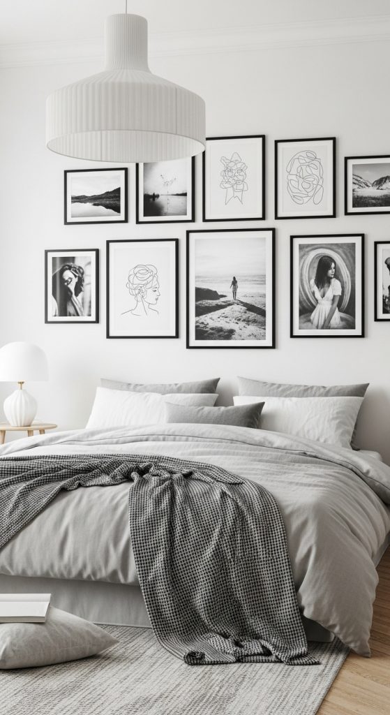 Pick one color scheme — like all black and white, or all earth tones. Even with various styles and frames, the consistent palette keeps it cohesive and chic.