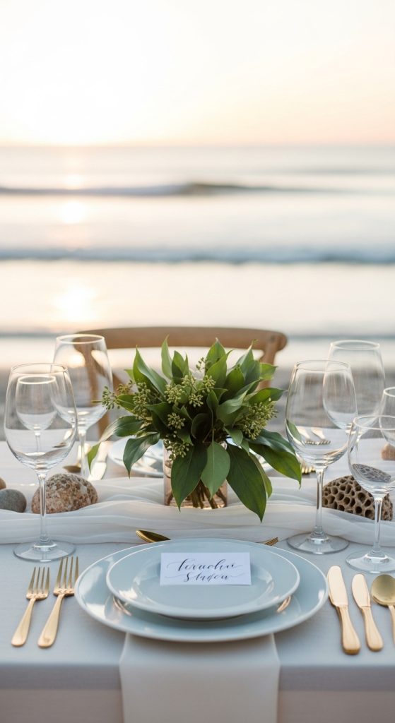 Perfect for beach weddings or coastal dinner parties—write guest names on scallop shells with gold paint pens or calligraphy ink and place them on each plate.