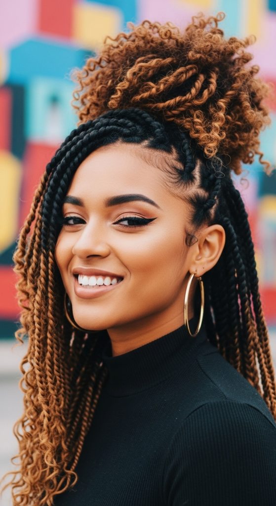 Combine flat twists along the scalp with loose, curly ends for a soft, romantic finish.